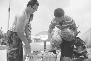 据瓜农介绍,西瓜集中上市的季节,官地洼会迎来很多进货的商贩。“你们来的时间晚了点,要是早上来就能看见很多大车买瓜。”瓜农说,商贩抢西瓜是很正常的事。“一般愿意卖给大商贩,省事。小商贩经常有空车回去的,有的人为了能抢到西瓜还托关系,找熟人。”