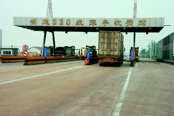 从现场观察情况来看,从该处收费站经过的大多数是大型货车,10分钟共通过了30多辆汽车,其中货车约占总数的四分之三。