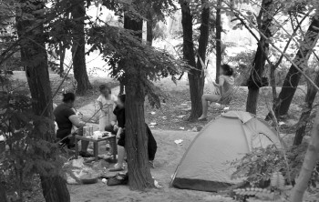 6月15日,因天气凉爽,不少市民在锦绣川风景区内野炊游玩,满地的白色垃圾很扎眼。 本报记者 王小会 摄