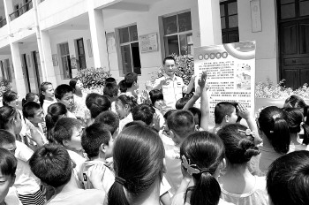 14日,菏泽市开发区公安分局丹阳派出所民警来到辖区小学,为孩子们上了一堂生动的“暑期安全教育课”。民警王志强利用安全知识展板,向孩子们讲授暑期安全知识和防范技巧。