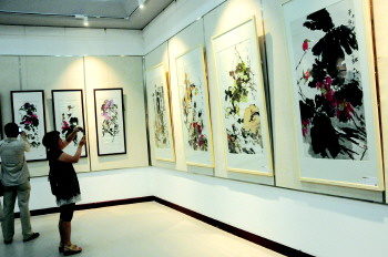 此次展出多为水墨山水画,今天是展览最后一天,市民可到文化艺术中心二楼展厅免费观看。