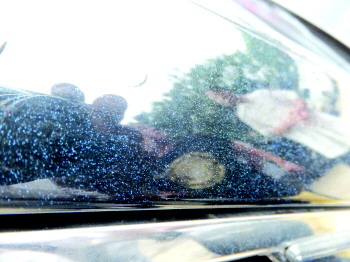 当天下午,在济微路西侧银座佳驿酒店,韩先生正在酒店等待协商结果,黑色皇冠轿车停在酒店门口。“今天早上8点多,我退房回到济南后,才发现车身颜色变了。”他说,从车侧面看发动机盖和车顶,黑中带着淡淡蓝色,仔细擦拭后发现车身均匀蒙上一层蓝色油漆点。“挡风玻璃上也是油漆点,雨刷都刮不去,玻璃也成‘磨砂’的了。”