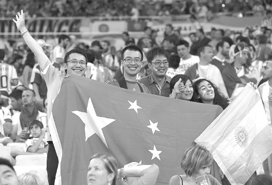 记者在当地碰到四位有着华人面孔的一家人,看上去是五十多岁的夫妇带着二十岁左右的女儿和十来岁的儿子。女儿身着阿根廷队服上衣,一直纵情高歌。后来记者得知,少女姓苏,祖籍广州,出生在加拿大,此次是专程来巴西,为阿根廷助威。
