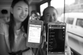 学生族是公交Wi-Fi信号的第一批受益者,他们发现信号后,都十分开心地联网上网。