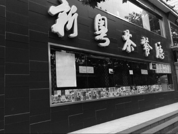 2点30分,记者来到位于东风街V1广场-1楼泰华新天地南侧新粤茶餐厅,记者看到这家店跟胜利街店的情况一样,也是大门紧闭。