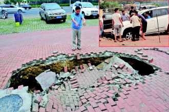16日6时40分许,在高区吉林路一临街店铺门口,一辆丰田吉普车停车时,车体下方的路面发生塌陷,路面上出现一个长约6米宽近4米的坑,卡住了吉普车的前轮。10多名好心人耗费一个多小时将车辆抬了出来。事发后,始终没有人员出面解决此事,截至记者发稿时,事故现场并没有进行处理。
