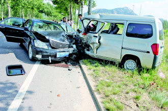 14日15时许,205省道界石镇大高坎村附近,一轿车和一面包车相撞。轿车凹陷变形,车盖翘起,安全气囊弹出,水箱、油箱破损。面包车被撞进路沟,车门扭曲变形,前挡风玻璃破碎。两车上各有两人,面包车驾驶员受伤,被紧急送往医院。