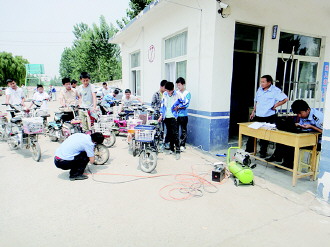 近日,峄城峨山派出所用配备的两台打码机,兵分两路,采取定点打码和流动打码、上门和预约服务等多种方式,为辖区内一万余辆电动车打码,进一步方便了群众,提升了电动车登记率。 本报通讯员 李忠怡 本报记者 袁鹏 摄影报道