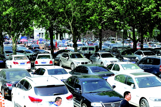 ◥省城很多大医院的停车难成了“顽疾”,导致一些外地车冒着吃罚单的危险硬是非法停车。 本报记者 周青先 摄