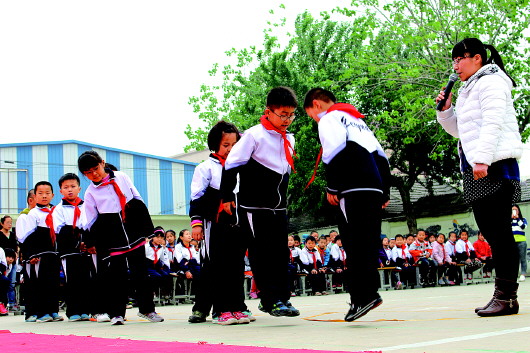 济南市某外来务工子女定点小学的学生在做游戏。(资料片) 本报记者 李飞 摄