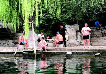 据介绍,西护城河内,游泳的市民主要集中在少年桥、五龙潭码头;南护城河,则主要是夜间有市民跳泉池游泳以及白石泉附近游泳;东护城河主要是在船闸以南、东河亲水平台附近。