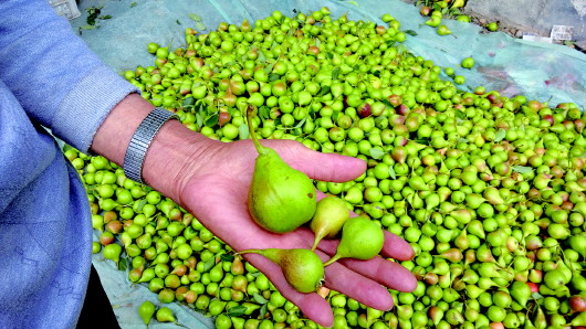 ◥仲宫镇大泉村里收获的梨子,比去年小了一半。