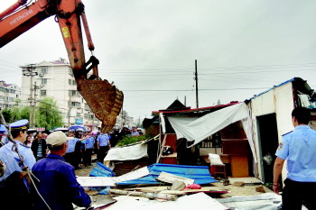 “因为违法建筑多,加上占道经营严重,以前经过此处的公交车都改道了。”崂山区城管执法局中韩中队中队长刘强介绍,今年1月,崂山区城管执法局组织力量对保张路两侧的违法建筑进行清除。然而,5月以来,整治后的保张路又开始出现违法建筑情况,造成极为恶劣的影响,群众反映十分强烈。前期,执法人员进行了入户走访,动援户主进行自拆,并下张贴了整治通告。17日,中韩中队将对保张路上的30余户违法建筑进行了拆除。