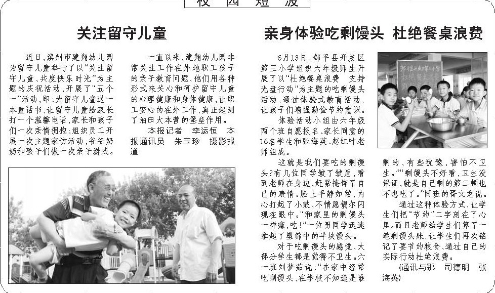 6月13日,邹平县开发区第三小学组织六年级师生开展了以“杜绝餐桌浪费 支持光盘行动”为主题的吃剩馒头活动,通过体验式教育活动,让孩子们增强勤俭节约意识。