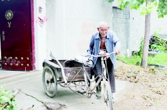 为了方便老人修路,张同新的女儿给他买了辆脚踏三轮车。老人说,这辆战功赫赫的三轮车已有二十多年了,如今车漆已全部脱落,先后也已经换了十几次车胎。