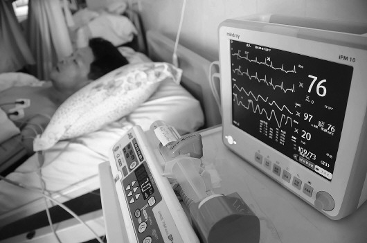 18日,在烟台山医院心内科病房,48岁的宋先生躺在病床上,一边的心电监护仪显示血压为109/73。一提起世界杯,躺在床上静养的宋先生就开始有些兴奋。