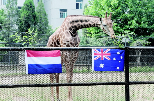 长颈鹿大壮预测澳大利亚赢。 本报记者 周青先 摄