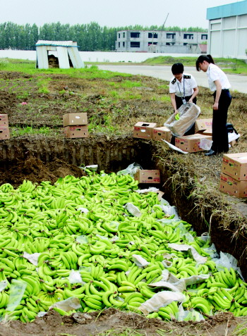 本报6月18日讯(记者 曹思扬 通讯员 王守国 范薇) 18日,青岛出入境检验检疫局发布消息,近日,20余吨从菲律宾进口的香蕉被查出含有有害生物——新菠萝灰粉蚧,检疫人员依法销毁了这批香蕉。