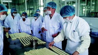 “原来,好吃的花卷是这么做出来的。”在经区海埠村景仁馅饼的后厨里,市民李女士看到花卷的生产过程,不由得啧啧称奇。和传统花卷不同,这道招牌花卷一共需要8道程序,最后将揉成细条的面卷起来,很快,一个个规整的花卷就制作出来了。在蔬菜加工车间,都有熟练工人人工切配,每半个小时,切菜工人都要进行双手和案板的消毒,同时每个屋内都配备了移动紫外线消毒灯,确保原材料的品质。而在配料室内,每一份菜系需要的配料都被分门别类的打包装袋。“这样才能保证我们生产出来的菜品口味统一。”工作人员介绍。