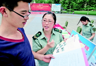 18号,威海市粮食局工作人员正在市政府广场向市民讲解如何选择放心粮油等相关知识。目前,市粮食局已建成“放心粮店”83个、粮油配送中心4个、放心粮油加工示范企业10个,其中国家级放心粮油企业5个。
