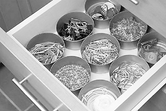 2、金枪鱼罐头可以作为很规则的小容器。大部分时候无论我们想什么办法去存放那些废弃的物品,但似乎还是那么杂乱无章。现在就可以用一打金枪鱼罐头盒将零碎杂乱的东西收拾好,每个小隔间可以存放不同的东西,例如图钉、橡皮筋、回形针等。