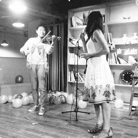 等到主持人Emily拿起话筒,现场安静下来时候,我仿佛能够听见自己的心跳。但是紧张的感觉大概持续了几秒钟,之后便被一种近似筹办“喜宴”的感觉所取代。摄影师扛起机器,音响师调试,我的朋友海宁换好衣服,其他人假装观众一样坐在台前。Emily果然是一个训练有素的主持,演出没开始就让大家一起high了起来,拉各种朋友上台来谈对我的印象,以及介绍我小时候的故事。“馒头”上来的时候说祝我学业有成,情感幸福。戈多则把我的“女王”印象公之于众。
