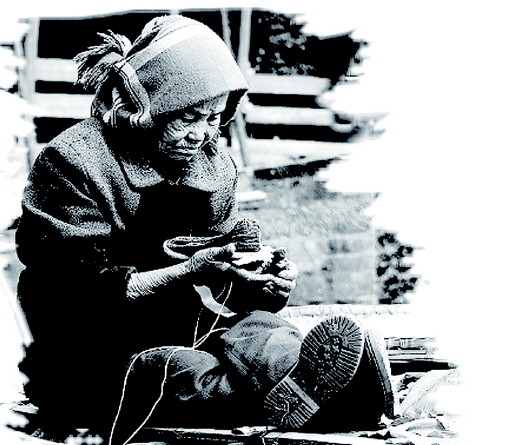 后来,妈妈做鞋越来越熟练。每做好一双鞋,就像打了一次胜仗似的,她用牙嗑断最后一个针脚的线头,把一双新鞋摆在地上,呼唤着我:“快来!试试新鞋!”然后,蹲下来双手脱下我脚上的旧鞋,又抱着我的脚送进新鞋里,一只手扶着我的小腿,另一只手的手指当鞋拔子,穿好后,习惯地按按我的脚趾在鞋尖里的位置,又捏一捏两边的鞋帮儿,然后抬起头问我:“合适吗?”我说:“挺合适的,挺合适的。”每次妈妈都无比高兴。