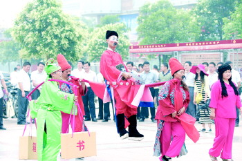 6月14日上午,邹城市人民广场热闹非凡、人头攒动,由市文化遗产保护委员会主办、各相关部门承办的,庆祝全国第九个“文化遗产日”宣传展示活动正在这里举行。该市围绕“让文化遗产活起来”主题,举行非物质文化遗产展示、展演活动,民间艺人现场向市民展示剪纸、面塑、吹糖人、布老虎等技艺,展演“独杆轿”、 “二仙斗”等民间表演艺术,向市民群众宣传、展示非物质文化遗产的传统文化魅力,增强市民文化遗产保护意识。