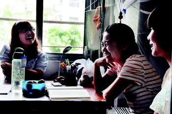 莎莎从家里带来了油桃,这是她妈妈亲手种的。“绝对绿色天然,哈哈……”一句话,让这些女生们开怀大笑了好久。