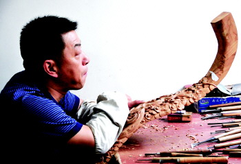 “我刻的是一件透雕如意摆件,从原木到成品,至少需要5000刀。”该作坊负责人冀新华说,一件普通的如意摆件,要经过绘图、描线、修粗、打磨、镂空、烤蜡等十多种工序。而因如意要求雕工复杂、图案精美考究,多年来一直最受欢迎。“随着工艺的改进,机器雕刻完全能够替代手工,但因图案效果有所欠缺,目前曲阜大多作坊都坚持手工雕刻。”
