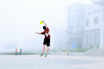 19日下午,不少市民像往日一样在滨海广场附近遛弯游玩,一场突如其来的大雾将他们裹入一层“纱”中。在烟台画院附近,一位正在运动的小伙子并没有因为大雾的到来而停下脚步。据悉,近地面空气湿气大,风力较小是形成这次大雾的主要原因,与空气质量无关。