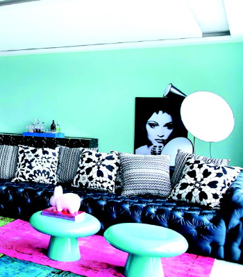 巴西风格设计既有现代主义的造型和装饰,又有古典风格的沉稳与大气。它注重形体的搭配和色彩的协调,任何环节的设计都不允许简单而粗糙,在细节处追求完美。沙发和茶几的对称体现了现代混搭主义,蓝色和绿色的搭配运用让人似乎嗅到了薄荷的清凉。整个设计成功地将家居化作艺术空间,却又拥有人性化的生活脉搏。