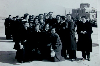 “往事如梭,旧友张玉娟赠照快六十年了。”近日,丁本正老人拿出一张珍藏的黑白照片介绍道,这张照片是朋友张玉娟寄来的,是她和艺友们在首都机场和周总理的珍贵合影。虽然丁老与张玉娟已几十年没有见面,但看到这张照片,往昔的场景仍历历在目。 张玉娟,潍坊东关人,1955年入潍坊服装二社工作。她虽然没受过专业培训,却擅长歌舞,一登台就相当有“范儿”。济南文工团在全省海选演员时物色到了她,因形象好、有气质,被鉴定为一块“未琢之玉”,完全可以从头打造。