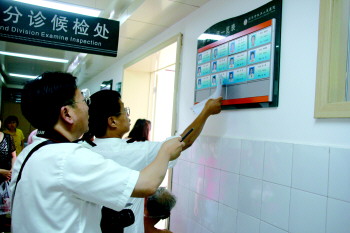 图为菏泽市卫生局卫生监督局监督员对菏泽市牡丹人民医院进行检查。本报记者 李德领 摄影报道