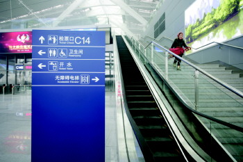 窗口地区的指引标识应设在醒目位置。(资料片) 张晓鹏 摄