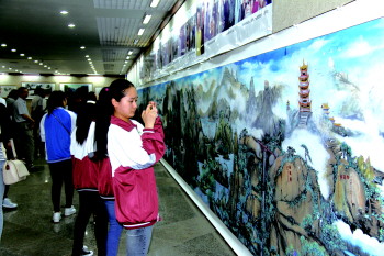 博物馆内参观者正在给巨幅长卷拍照。 本报通讯员 来守英 摄