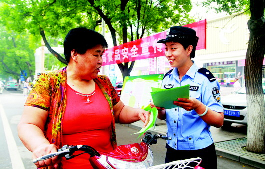 19日上午,邹平县治安大队在商厦附近组织开展了“2014年全国食品安全宣传周暨全国公安机关打击食品犯罪保卫餐桌安全专项行动成果展示”活动。治安大队民警向群众形象地展示了“瘦肉精”猪肉、“地沟油”、有毒大米、毒豆芽、真假粉丝的辨别方法,收到了良好的效果。