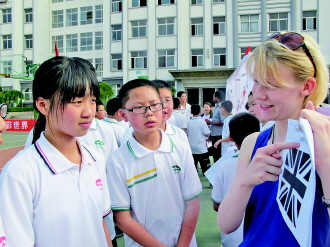 琳琅满目的商品,熟练的英语进行买卖货物,现场还有外教表演脱口秀,用英语举行脑筋急转弯、猜谜语等活动,这是日前环翠国际中学“校园纽约街”活动的一个情景,此举是为了进一步提高学生的英语口语表达水平,激发学生学习英语的兴趣。