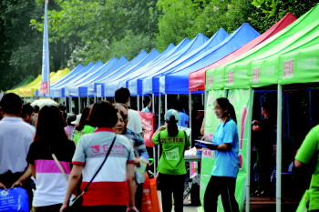 19日中考第二天,不少考生表示数学考题难度较大,而英语虽然没像高考一样取消听力,但题目比较简单。考场内的考生为自己的未来奋笔疾书,考场外的商家也好不闲着,各种辅导机构借机“抢戏”,大打各种促销战。在外等候的家长手里都塞满了各种宣传单页。 本报记者 王鸿哲 摄影报道