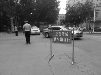 听力开考后,民警在考点附近道路执勤,引导车辆绕行。 本报记者 谭文佳 摄