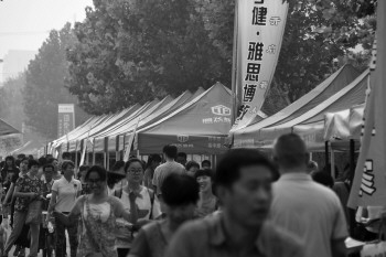 不少辅导学习班在市实验中学考场外安营扎寨。