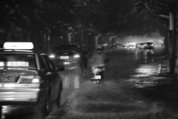 19日21时,张店人民西路与猪龙河交汇处,河水已经离桥面仅有80厘米左右。随后,记者在往南行走,发现猪龙河水位不断在上涨,并且水流比较湍急。两边道路上的积水还在不断涌向猪龙河,同时还有不少排水管道向猪龙河内急速排水。