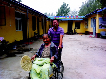 忙里偷闲,孔祥胜喜欢推着老人在院里转悠、散心。