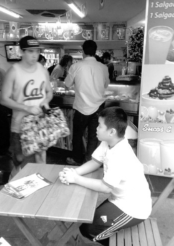 永泉说他不喜欢在国内上学,因为每天都有好多的课外作业,每天都要上课,在国内不好玩,“在巴西不用上课,我不想回去。”虽然永泉觉得巴西好玩,但实际上他并没有什么小伙伴,因为语言不通,这位来自广东的小朋友会守在店里,帮助父母收拾餐桌。