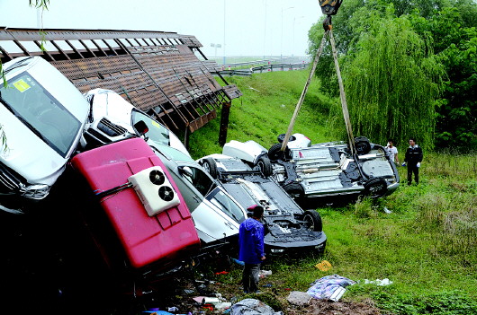 “一辆大货车拉着很多新车闯到沟里去了!”6月20日上午8点半,市民葛先生向本报反映,南绕城高速殷家林段往济广高速德州方向右拐的匝道处,一辆载有十几辆新车的挂车发生侧翻。