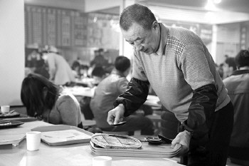 与其他几个保洁员相比,周立胜比较内向,不爱说话。对于他来说,捡学生的剩饭吃,一是感觉浪费粮食十分可惜,二就是可以省钱,减轻生活的成本。