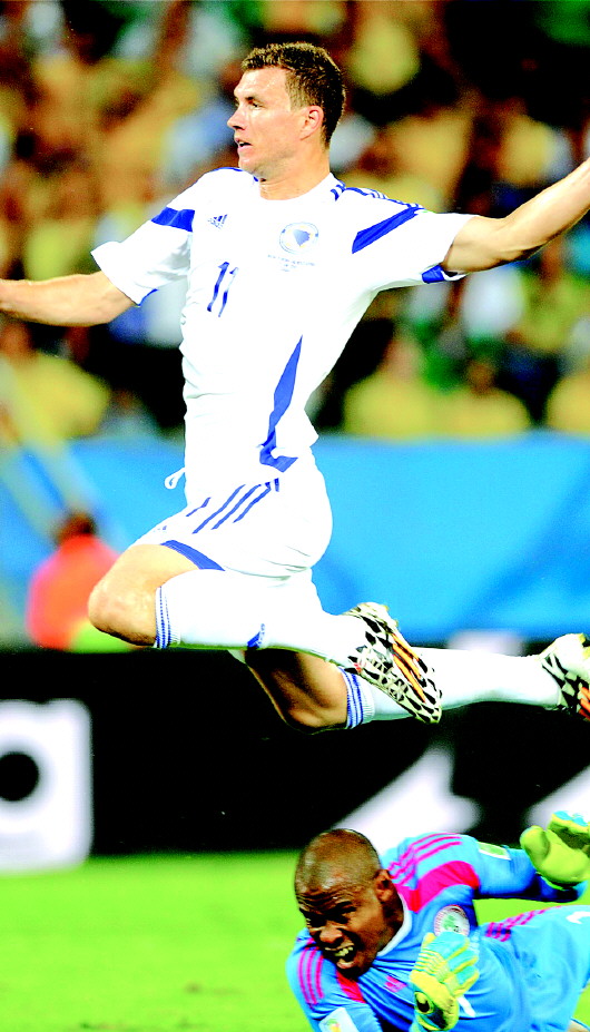 波黑前锋哲科(上)在与尼日利亚的小组赛中拼抢。 新华社发