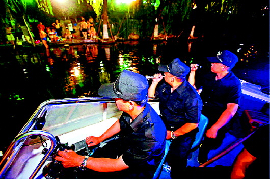 济南护城河禁游令发布后,仍有一些游泳者赶到这里冒险或观望。 资料片