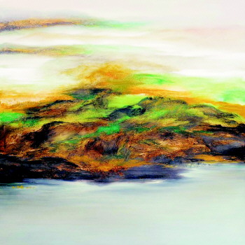 肖嘉于书法、绘画两域双栖。在书法领域却又不安分于传统的书法与篆刻,而于刻字艺术中辟出一径,让学科向外延伸,在边缘上做出不少文章;而在绘画中同样不囚于地域、不守于门派,更不限于画种。其先是融中合西创作出一些工笔装饰画,又涉泼墨,继之泼彩,再而彩墨相融,最后沉浸于综合材料中。由具象到意象,再由意象到抽象。