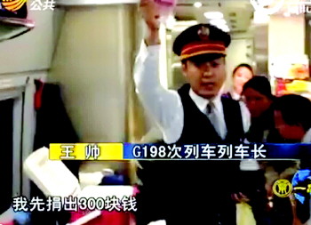 “我先捐五百。”王帅从口袋里掏出钱放进了捐款箱。让王帅没想到的是,旅客们纷纷解囊相助……王帅被感动了,更坚定了他继续募捐的信心。就这样,王帅一节车厢一节车厢地走,一遍遍地重复着这个不幸家庭的故事。“车长,冲着你的热心肠,我捐五百。”“我捐一千,这是我的!”